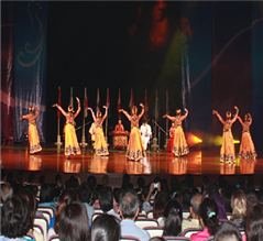 艺术团于8月14日,又应泰国易三仓大学的邀请,参加了该校“中国文化艺术周”的演出活动。中国的民族艺术以其独特的艺术魅力征服了在座的每位师生,演出结束时全场想起雷鸣般的掌声,久久不愿离去的师生与演员进行了合影留念,现场气氛十分热烈。