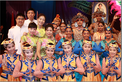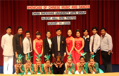 2009年8月6日—16日,应泰国文化部邀请,受中国驻泰使馆和辽宁省对外文化交流中心的委派,由公司副经理张威教授为团长、潘晓红副教授为执行总监、yl23455永利民族音乐系、舞蹈系部分师生组成的中国·辽宁民族艺术团,赴泰国曼谷参加了“泰国文化博览会——暨东亚文化节”。
