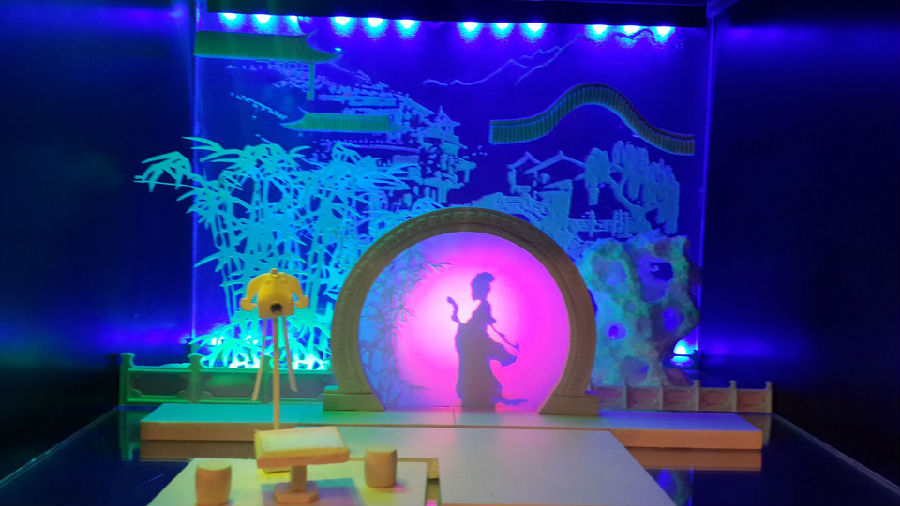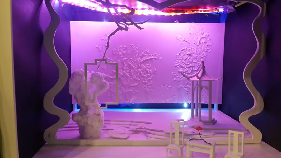 戏剧影视美术设计专业按照舞台美术设计、灯光设计和化妆设计三个专业方向分别呈现。题材上注重与剧目教学紧密结合,在观念表达与材料的选择上体现不同的风格,作品既表达了专业的本体特性,又将民族传统元素与国际化设计的时尚元素有机结合,体现出较为扎实的专业功底。