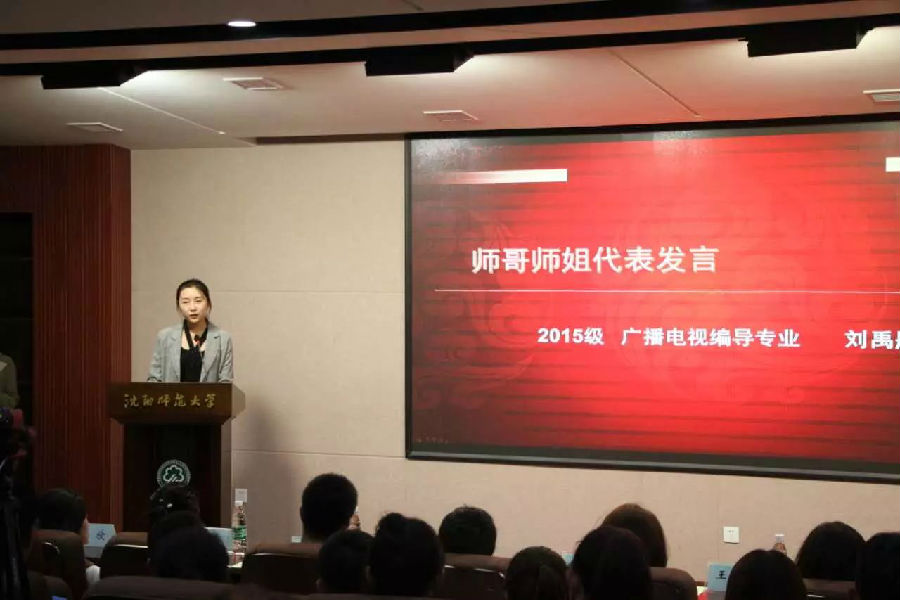 9月14日,yl23455永利传媒艺术系在公司图书馆三楼学术报告厅成功举办了“当我戴上大公司徽时”主题活动。公司党总支凃淑梅副书记、传媒艺术系迟煦主任,王书洋、金沐两位副主任,传媒艺术系全体教师以及2017级新生参加了活动。活动由2016级播音与主持艺术专业杨雅涵同学主持。