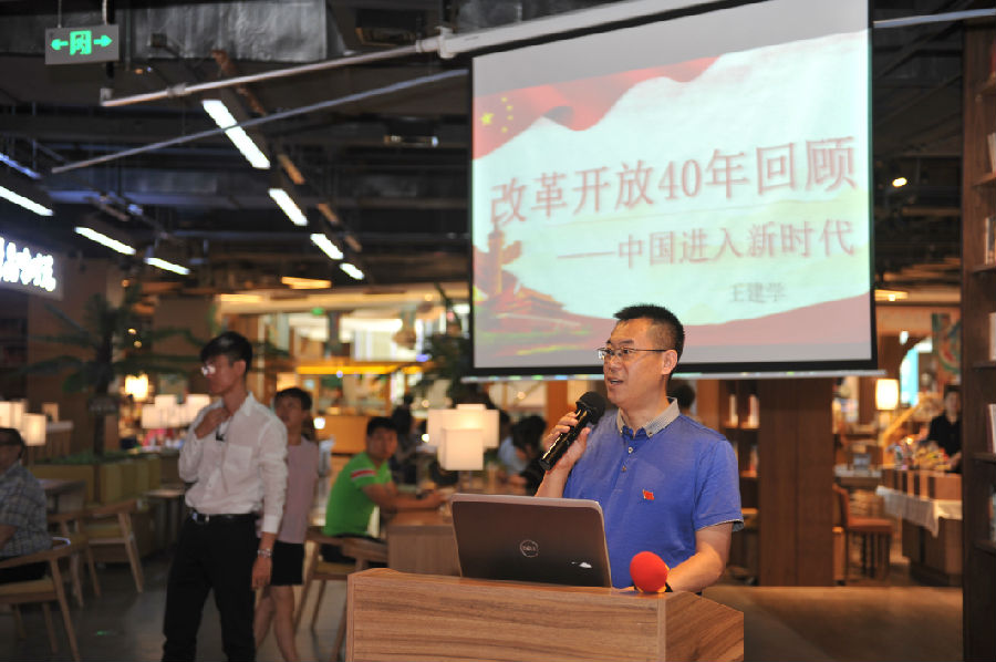 公司特邀省委党校王建学教授以“喜迎建党九十七周年、改革开放四十年”为主题,围绕改革开放四十年来艰辛路程、重大决策、 改革开放迈入新时代、社会主义制度的完善和发展、巨国效应等内容与全体师生共同深入学习了习近平新时代中国特色社会主义新思想。