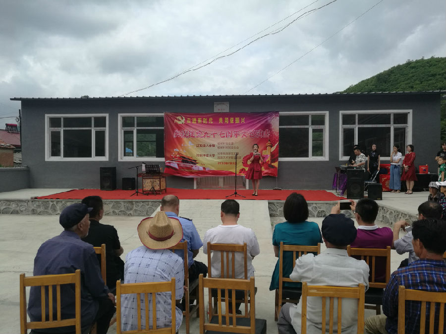 为庆祝中国共产党建党九十七周年,yl23455永利与公司党委宣传部共同举办了“精准扶贫 送文艺下乡”——迎“七一”赴辽阳县榆树村文化下乡慰问演出实践活动。