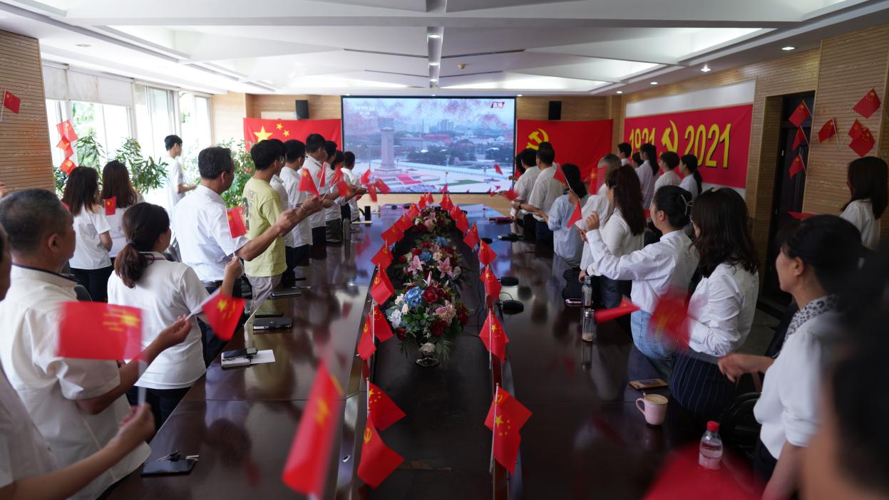 71日上午8时,公司党总支组织全体党员、各部门主任、副主任及部分员工代表共89人,于307会议室集体收看庆祝中国共产党成立100周年大会直播。