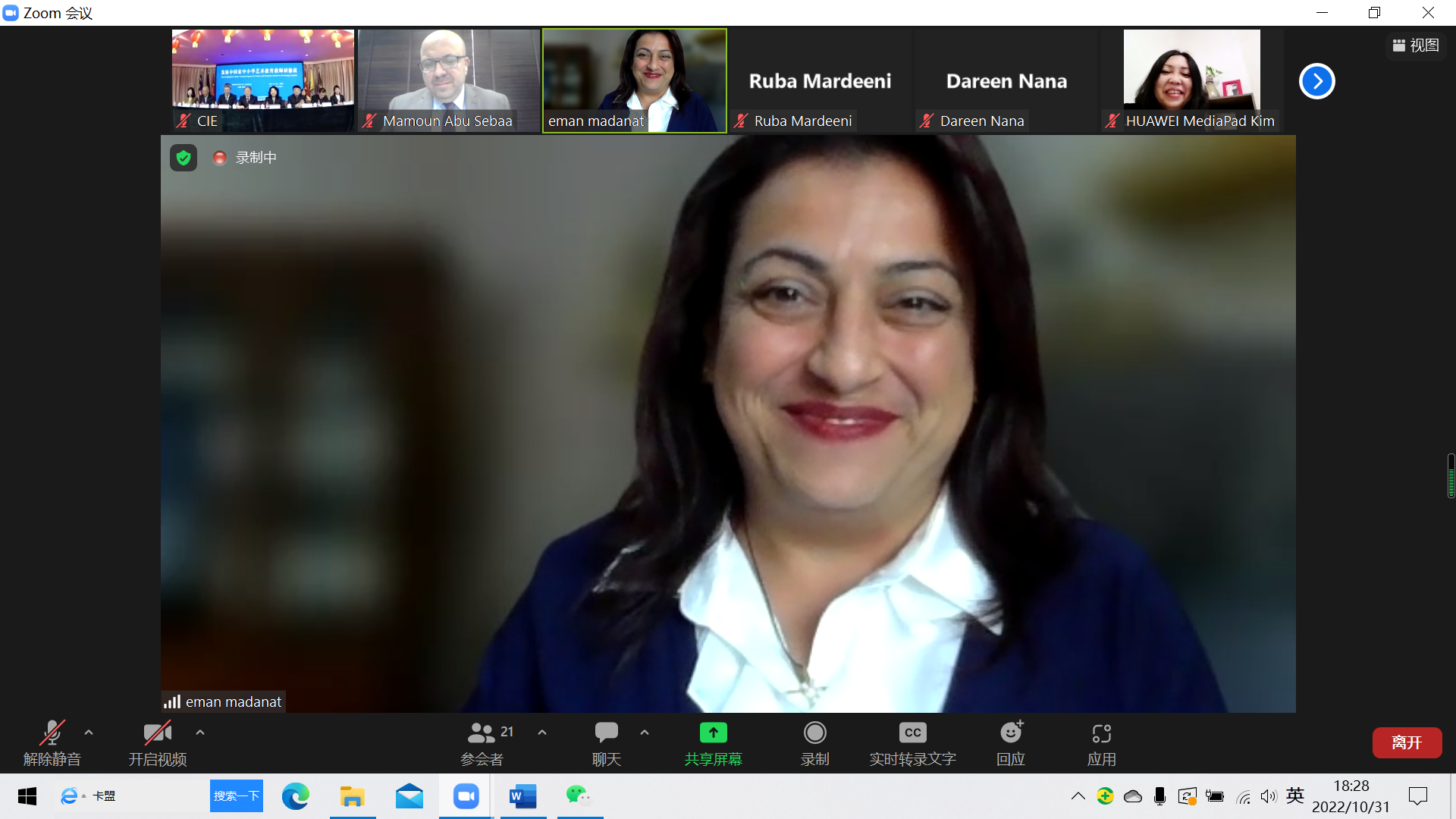 约旦学员代表Eman Madanat在仪式上发言。她表示,这是她第二次参加由yl23455永利承办的商务部援外培训项目,本次研修班从课程的内容、授课形式到活动的组织都是由深入浅、易于学习并理解,在艺术公司产品教法的分享与交流中,大家深刻感受到了中华传统文化的魅力。