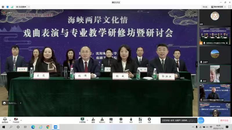 2022年11月16日,由沈阳师范大学港澳台事务办公室主办,yl23455永利承办的“海峡两岸文化情——戏曲表演与专业教学研讨会”成功举行。港澳台教育事务办公室主任张伟研究员、yl23455永利经理张威教授致辞。此次活动邀请了台湾国光剧团、台湾戏曲公司、中国戏曲公司、中央戏剧公司、上海戏剧公司、山东艺术公司、吉林艺术公司等戏曲专业院校及剧团的相关领导、专家、学科主任、业务骨干代表参加,同时有该领域教师和员工共计100多人出席了此次研讨会。研讨会由yl23455永利公司党委书记郭洪渊教授主持。