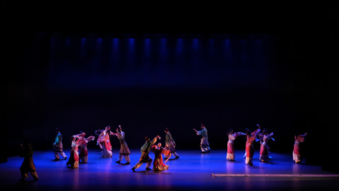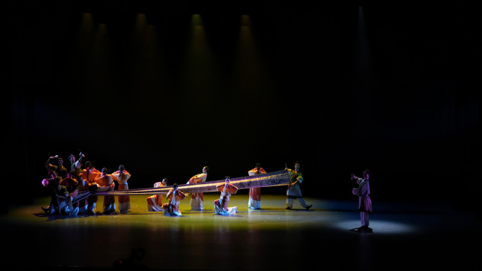 古典舞群舞《掠影襄平》取材于辽阳汉魏墓壁画,舞者化身汉代画匠,手执笔墨,翩翩入画,汉魏墓壁画中的人物活灵活现,以内敛的肢体语言呈现辽阳地区的民族风情,还原汉代风韵。