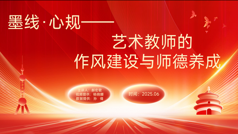 党课以一段展现数字技术赋能千年莫高窟焕发新生的视频开场,在光影流转间巧妙切入艺术教育的本质——这不仅是技艺的薪火相传,更是跨越时空的文明对话与精神延续。郝宏歌书记紧扣“墨线”与“心规”核心概念,将教学行为规范比作精准的墨线,将内在道德准则喻为永恒的心规,深刻阐释艺术教师作风建设与师德养成的重要意义。